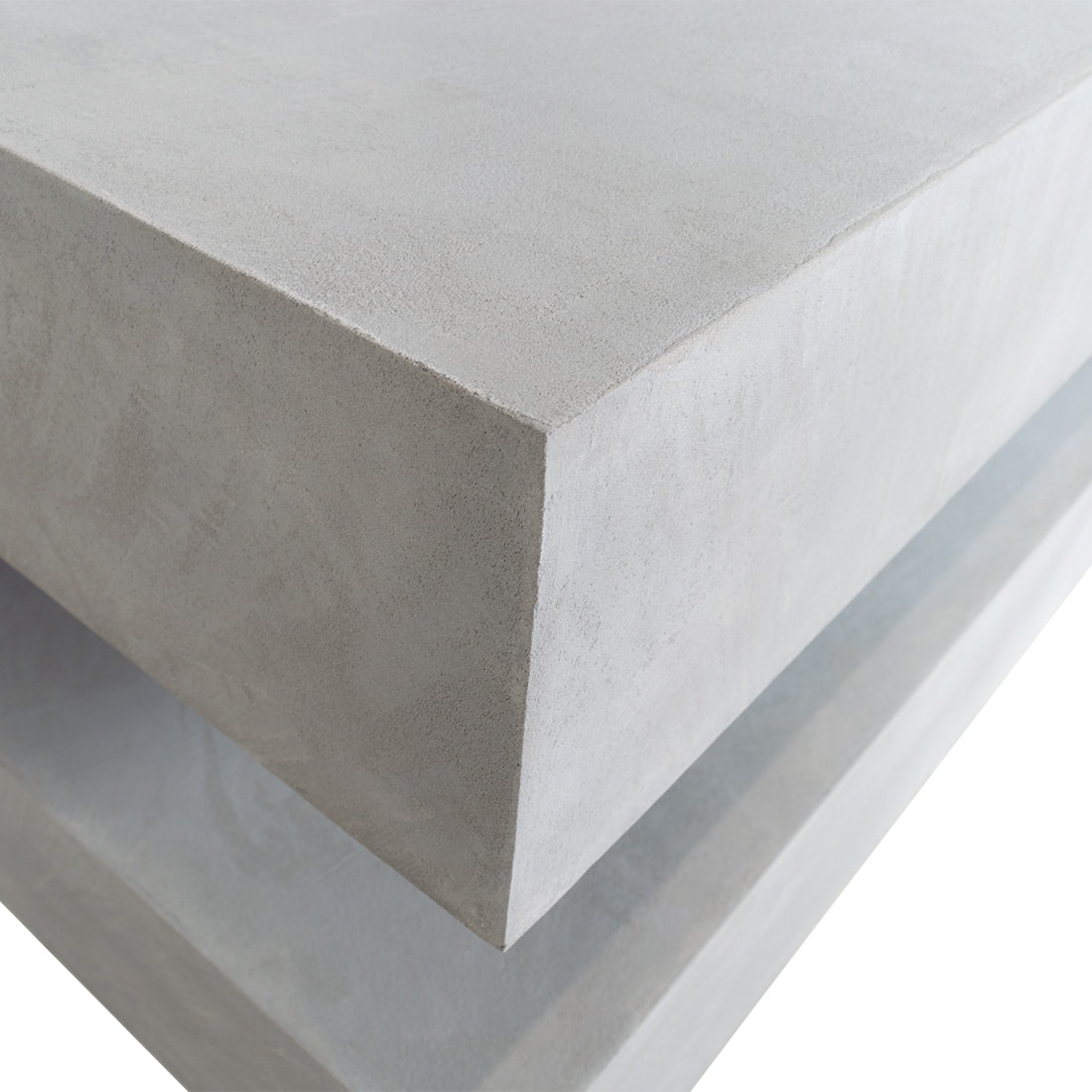 Dankzij de betonlook voelt het meubel aan alsof het echt van beton is. De putjes, vegen en oneffenheden zorgen voor het echte betongevoel. Maar het is minder zwaar dan beton en oogt vaak ook warmer dan echt beton. Ook zijn de randen vele malen minder scherp, maar blijven altijd nog een beetje scherp.