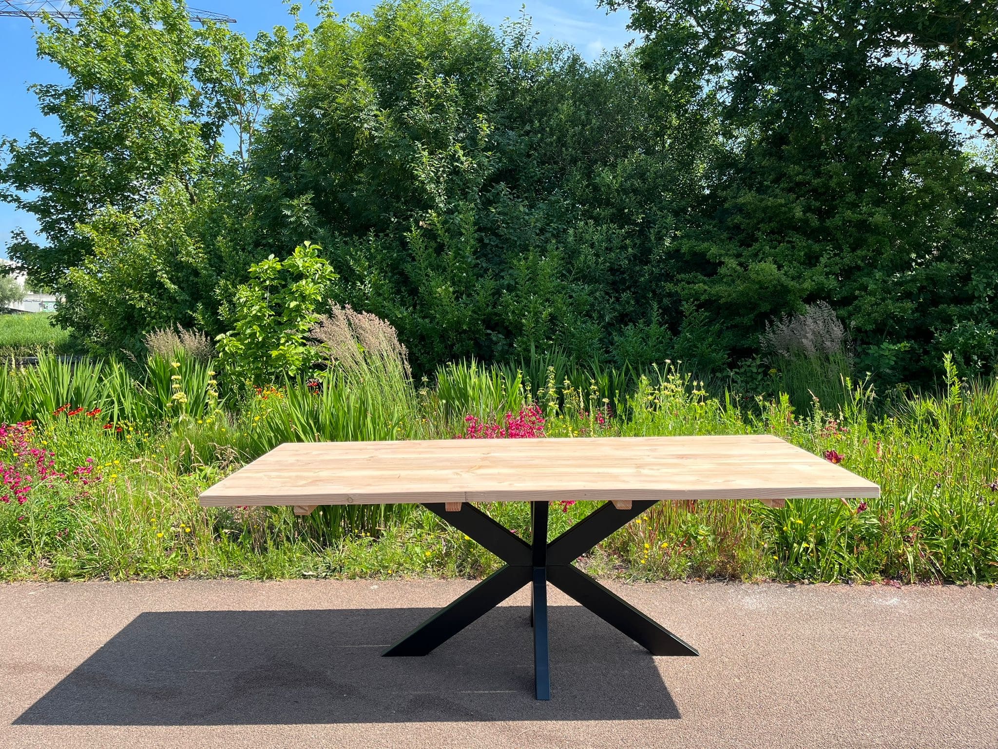 Douglashouten tuintafel Arend met stalen matrixpoot