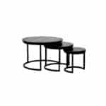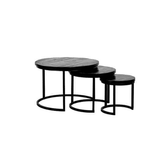 Leuke salontafeltjes van mangohout en staal in een unieke zwarte kleur. Je kunt de salontafels makkelijk in elkaar schuiven. Dit is natuurlijk super handig. Deze salontafels zijn niet bestelbaar op maat. Elk tafeltje heeft een standaard maat. Het kleinste tafeltje heeft een diameter van 53 meter en is 42 centimeter hoog. De grootste salontafel heeft een diameter van 73 centimeter en is 48 centimeter hoog. Deze maten kunnen altijd iets afwijken.